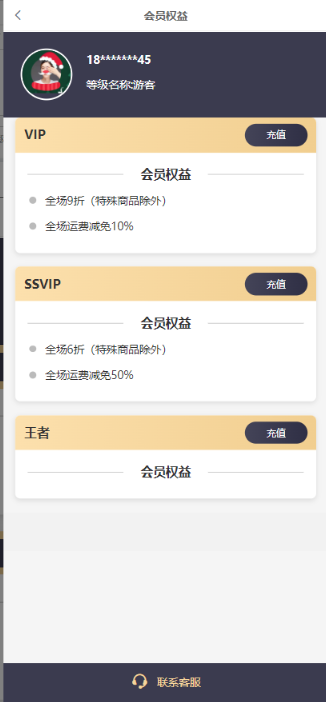 给某一等级会员的减价奖励优惠(值为空代表不设置折扣/减免运费)。用于会员专属促销活动。折扣运费减免可在前端会员等级权益页面显示,如下图
