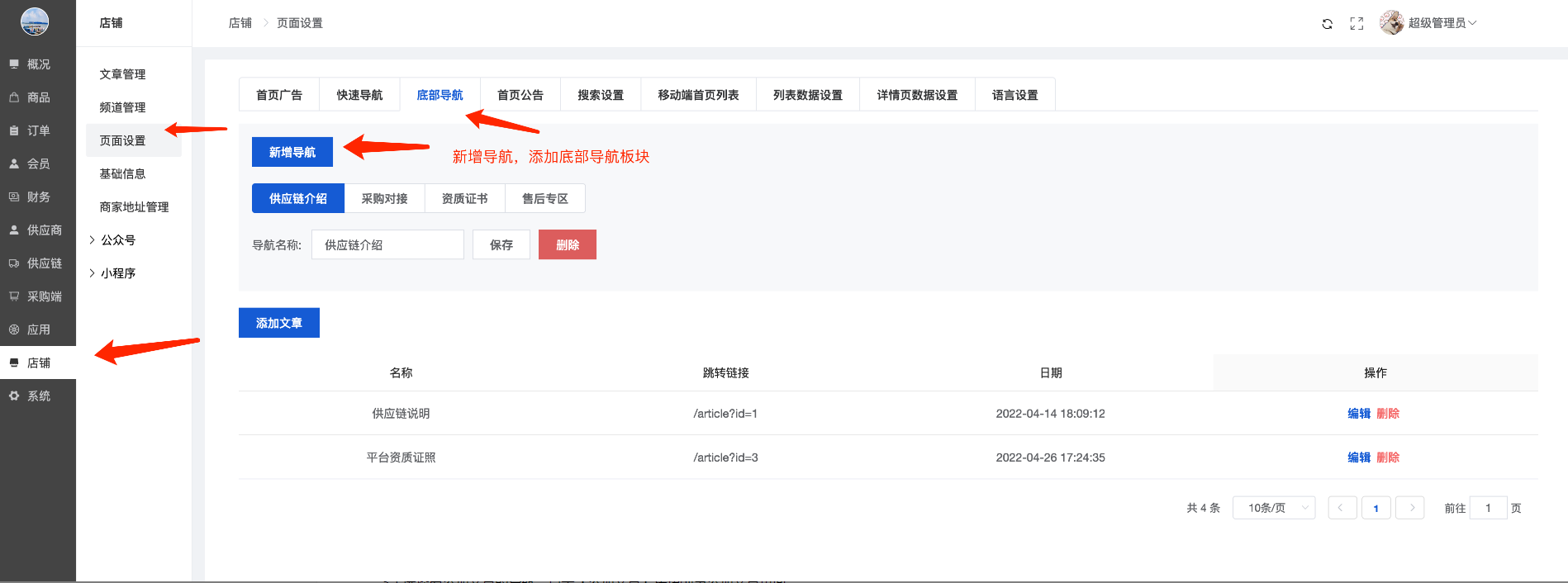 可以新增/编辑/删除采购商城顶部的导航,类似顶部导航,如图