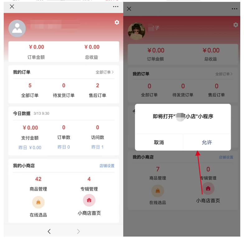 如果是已经访问过的会员,直接搜索小商店的小程序,进入时显示上一次访问的小商店数据。