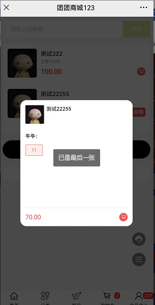 累计选择的商品数量超过兑换码兑换商品数量的,弹窗提示:选择的数量已经超过兑换数量限制,请取消后再重新选择!