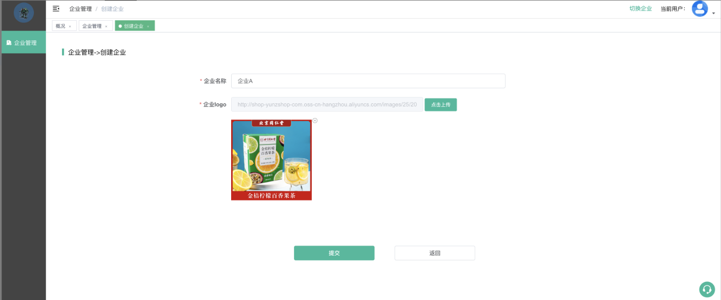 创建企业: