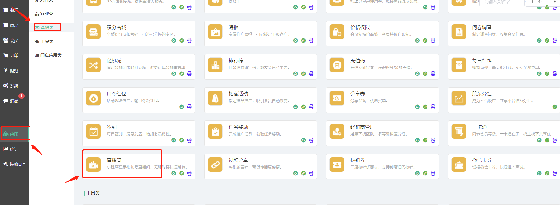 1.进入后台,找到“直播间”这个插件