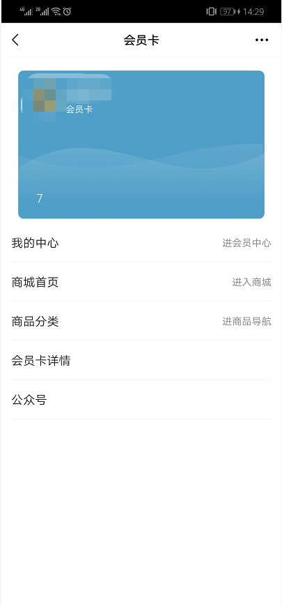 注意:点击会员ID可进入卡号页面,是没有核销码显示的,是正常的,如下图,这微信卡券仅作为引导关注公众号、进入商城的功能。