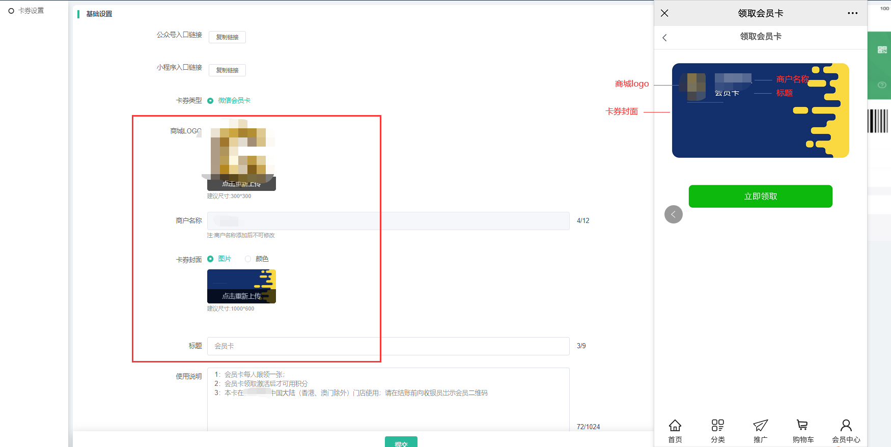 4、商城logo:会员卡的logo,建议尺寸300x300,或正方型图片