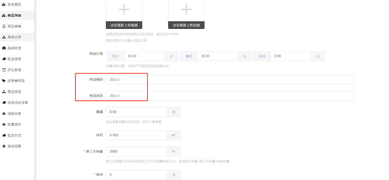 回复:检查一下商品编辑--基本信息、或者是否是多规格商品,规格里面的商品编码、商品条码是否都有填写完整