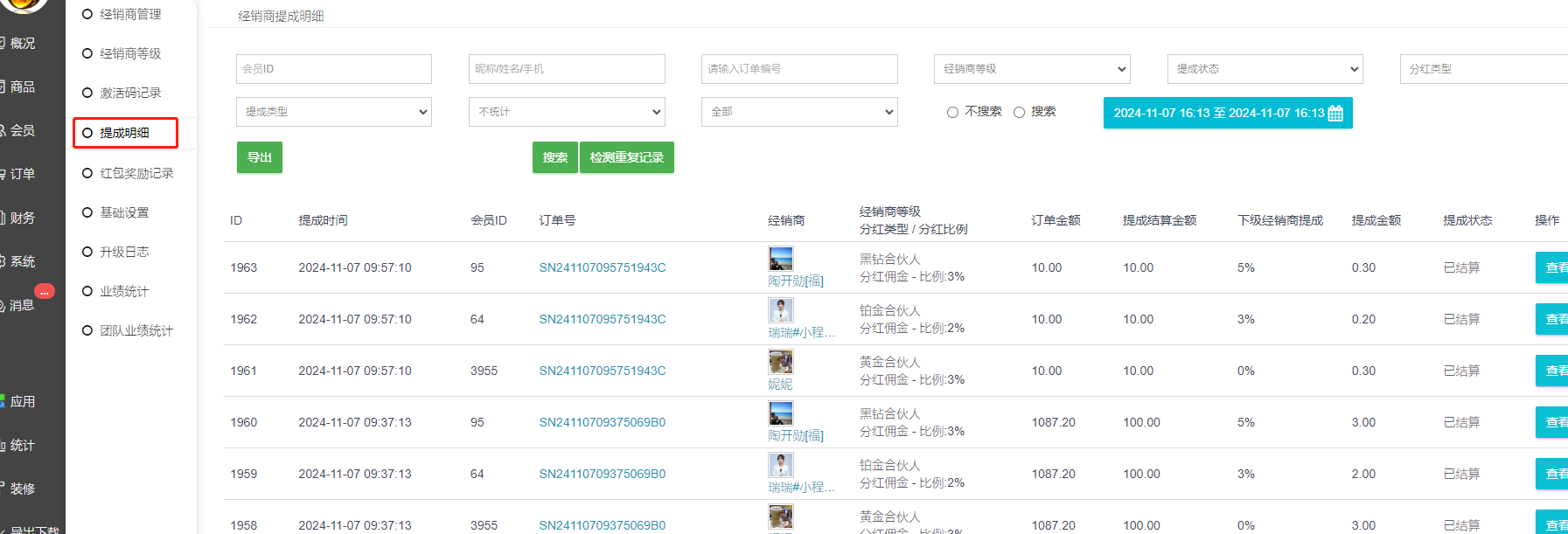 一、经销商提成明细(经销商管理—提成明细)