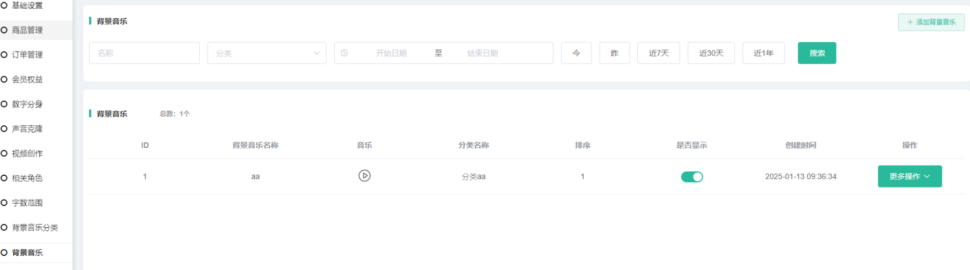 可上传音频文件到平台,音乐可用于生成视频的背景音乐