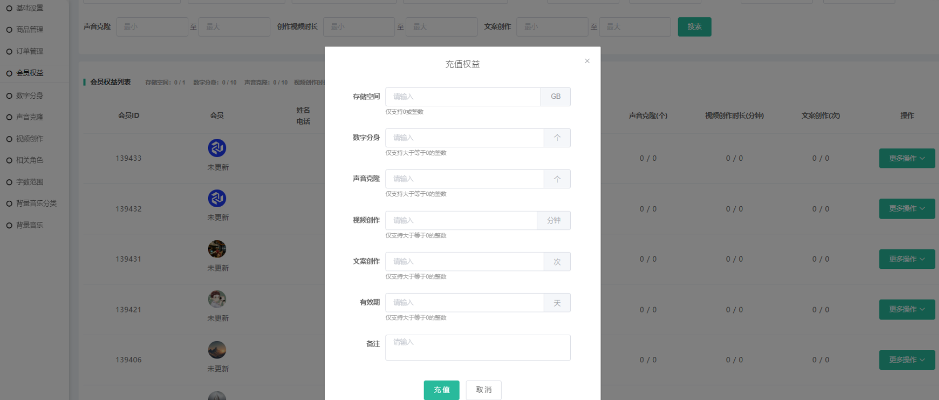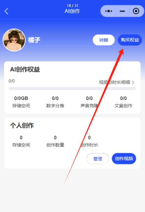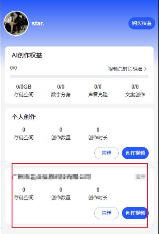 会员可通过购买权益,获取相应的存储空间、数字分身、声音克隆、文案创作的次数