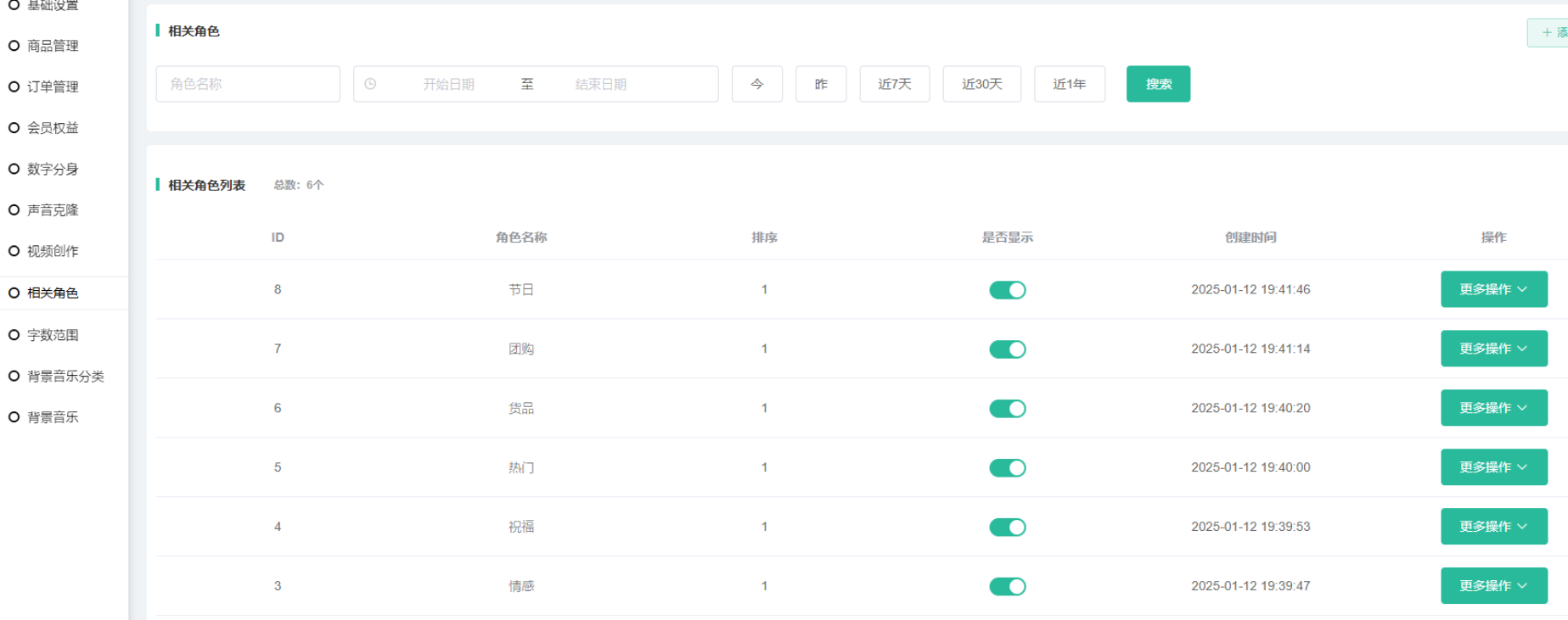 展示前端会员创建的数字分身,可进行查看视频,查看使用记录 删除操作