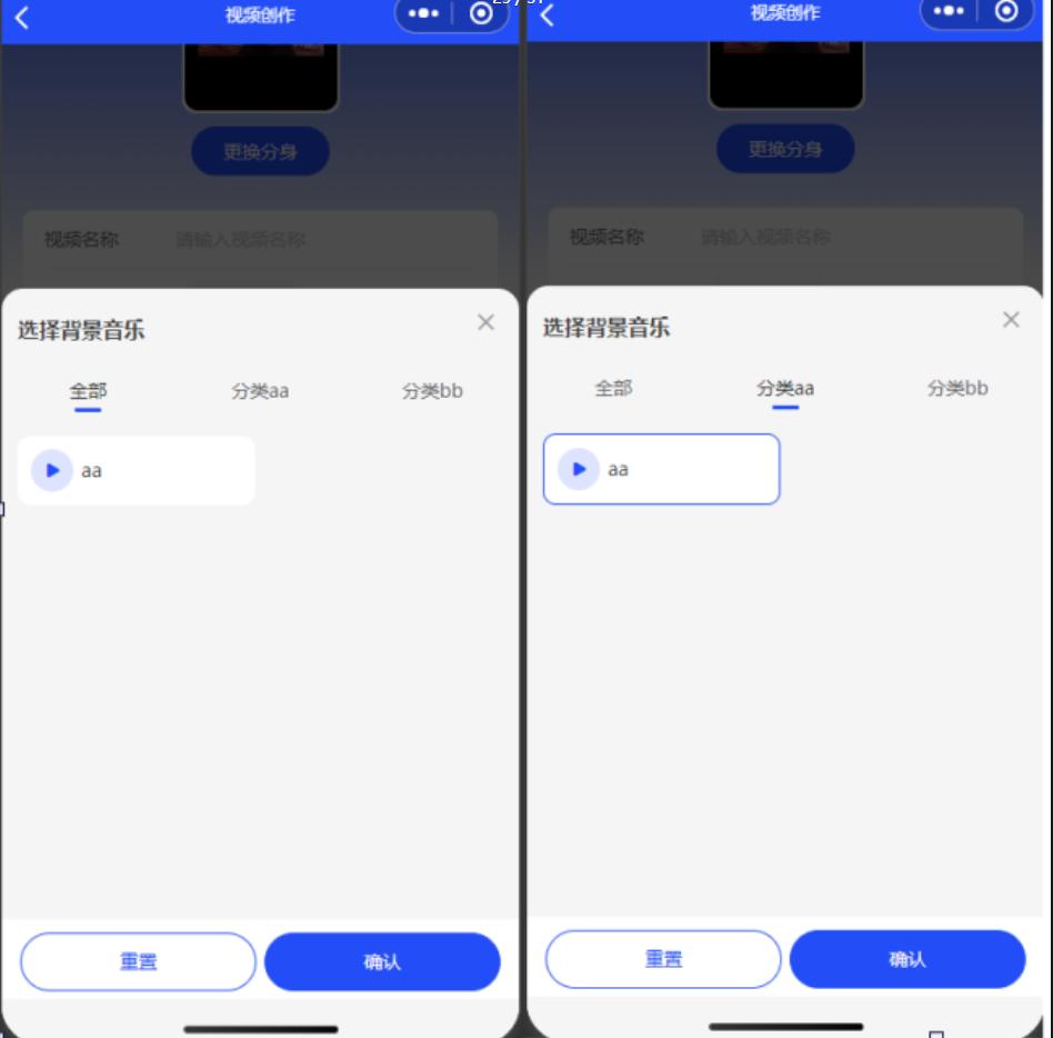 可选择后台设置的背景音乐,点击播放按钮可以试听音乐 点击重置可取消选择的音乐